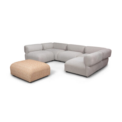 מערכת ישיבה בנויה מ2 חלקים, ספה ישירה + שזלונג חיצוני.