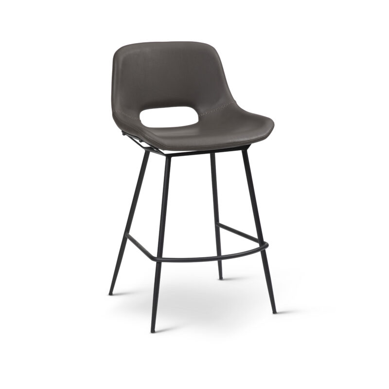 כיסא בר אלגנטי, מושב מרופד דמוי עור בגוון אפור עכבר ורגלי מתכת מושחרת
